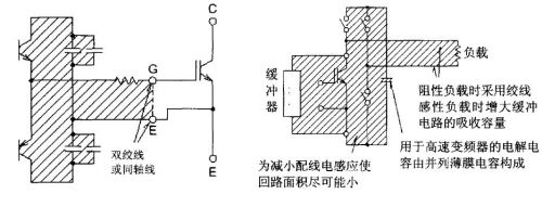 当控制板和IGBT控制端子不能直接连接时,考虑用双股绞线(2转/CM小于3CM长)或带状线,同轴线进行连接。