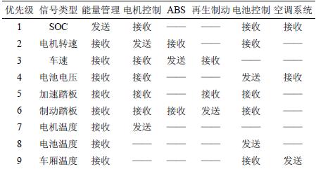 包括空调系统、仪表显示系统、车灯系统等。表1 给出了电动汽车各节点之