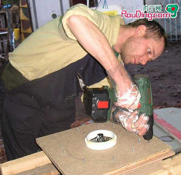 自制风力发电机-装上转子,用卡片使定子和转子之间保持1.5mm左右的间隙