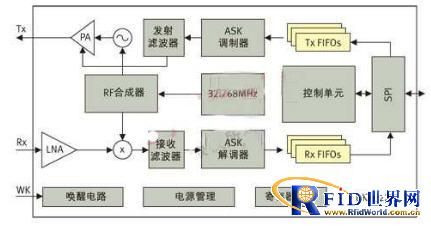 图2: BK5822射频收发器内部的系统框图