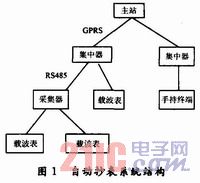 完整的远程抄表系统包括主站、集中器、采集器、载波表、手持终端等,其系统结构如图1所示。