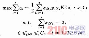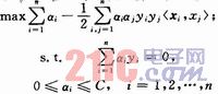 此二次规划问题,可用Lagrange乘子法把式(5)化成其对偶形式: