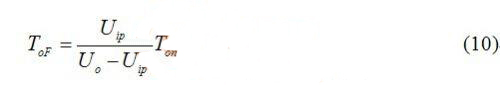 可见,输出电压Uo一定大于输入电压Uip,如果输出电压接近输入电压,在输入电压峰值附近截止时间远大于导通时间,开关周期很长,即频率很低。