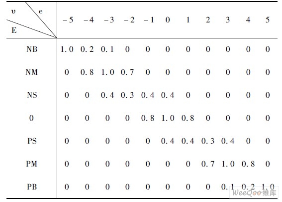 表1 模糊规则控制表