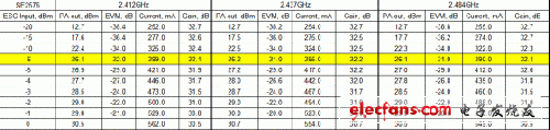 2.437GHz下,SE2576输出功率与耗电电流关系