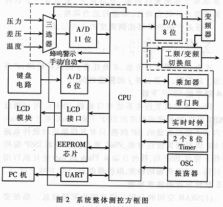 (5)使用乘加器加速CPU速度;使用看门狗保证程序正常运行;使用实时时钟记录流量或故障统计的时刻;使用定时器产生所需工/变频切换时间和流量累计时间;使用OSC振荡器产生系统时钟等。