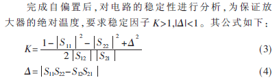 计算表明,K因子并不在全频段都大于1,因此在漏极加电线路上串联一个小电阻作为稳定措施。