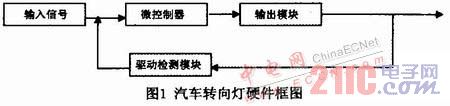 根据自动控制原理,汽车转向灯控制器应该由输入、输出和反馈检测电路组成,由AT89C51单片机组成控制器来处理和控制这些信号。汽车转向灯控制器硬件框图如图1所示。