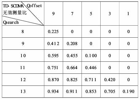当门限值 Qsearch 设置在(0~6)范围内时,服务小区的测量值接收信号码功率(RSCP:Received Signal Code Power) 低于表 3 中所对应的电平值时,则触发对目标小区 TD- LTE 的测量。