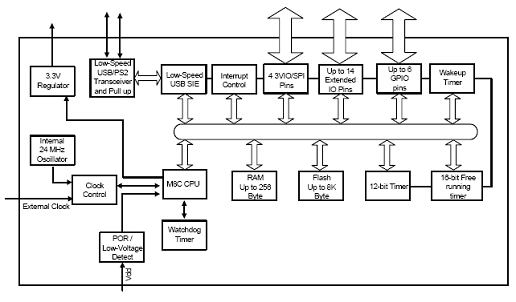 ❐ Proprietary 8-bit RISC processor, optimized for USB and PS/2