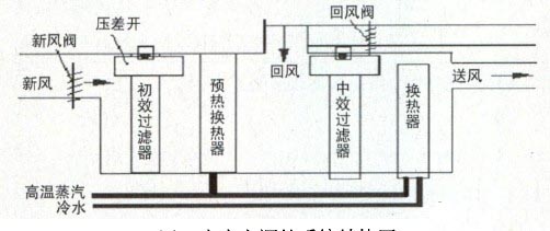 在中央空调系统中,各种用房冷暖设备除新风机组和空调机组外,还大量使用风机盘管。它只有盘管、三速风机、电动调节阀,感温组件、控制器等组成。一般三速风机开关,感温组件、控制器等制成一个整件设备,目前,市场上有两种,一种是盘管控制器为DDC控制,并具备与主机通讯功能。这种控制器可通过计算原则中心控制,西楼使用这种方式。另一种是不具备通讯功能的盘管控制器,可以按照水系统的连接情况的将风机盘管分为若干组,每组的支路入口处安装流量计、供回水压差变送器及供回水温度传感器。从而可计算出风机盘管水阀的开度,并给电动调节阀一个指令,从而将电动阀调节至相应的开启度,使盘管中流过所需要的水流量,东楼使用这种方式。为解决面临的问题,可以通过对采样到的回风温度及其二氧化碳焓量控制调整加热盘管及表冷盘管二通电动调节阀开度和送风风量(风机转速),实现对送风温度(设定点可调整)的控制。方式如图8所示: