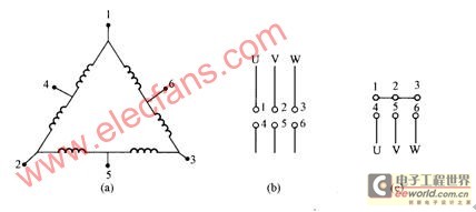 (a) 结构示意 (b) 三角形接法 (c) 双星形接法