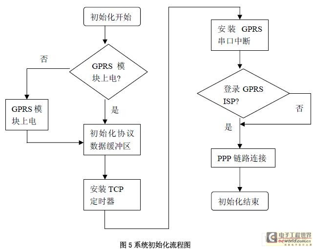 为了能利用 TCP/PI协议进行数据传输,必须对系统的硬件和软件进行初始化。图 5为系统初始化部分的流程图。