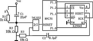 X25045的看门狗电路使用十分方便。X25045内部还集成了512BEEPROM和电压运行监视系统,只需这样一块芯片,外加晶振和复位电路就可以组成单片机的应用系统,非常适合于便携式仪器和嵌入式系统的设计。