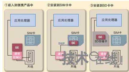 另外,配备“安全元件(SE)”后,可利用电子货币结算等服务。安全元件可以安装在便携产品内、SIM卡或是SD存储卡中。