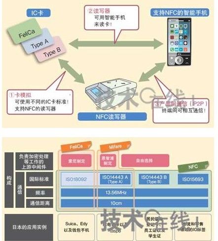 例如,东日本旅客铁路公司(JR东日本)的交通卡“Suica”和日本BitWallet的电子货币“Edy”,均采用了FeliCa的物理层和加密处理方式。FeliCa的无线部分采用NFC的标准规格之一“ISO18092”,负责加密处理等工作的高端中间件为索尼规定的自主产品。