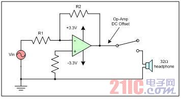 在便携式应用中,减小尺寸是重中之重,在地电位以下摆动的单电源音频驱动器可用来省去隔直流电容。不需要隔直流电容的音频驱动器仍会受杂讯和破音问题的影响,因为音频驱动器运算放大器的DC偏移电压范围为±10mV至±20mV。如果没有一个电容来消除DC偏移电压,在开关切换时,开关将会把偏移耦合到负载。