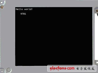 移植uCGUI到ARM处理器S3C44BOX上,并编写Hello World程序,在Micetek 44B0实验平台的LCD上显示“Hello World!”字符串,在LCD显示平面坐标(20,20)处,显示一个小于10000的整数,该整数不断循环加1,每次加1后立即更新显示,从而反应出显示输出的速度。