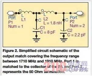图2显示的是具有包注模TxM的功放部分的输出匹配,它有两种情况:不带屏蔽以及在包注模上施加屏蔽。该双端口模拟是采用Ansoft的3D EM软件工具HFSS实现的。