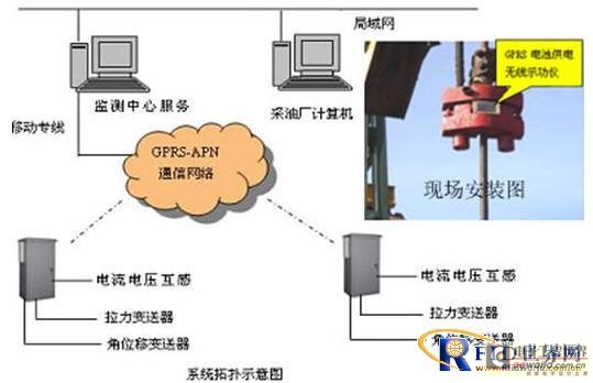 油井远程测控系统主要由井口监控终端和监控中心计算机系统构成。其功能是通过对井口参数的实时检测,将检测到的油井状态参数,通过GPRS" title="GPRS">GPRS无线方式传送给采油厂实时数据库服务器,使生产管理的各个部门能够及时掌握油井工作状态,缩短油井故障处理时间,提高开井时率,增加原油产量,提高工作效率,为抽油机井精细管理提供一种全新的手段。