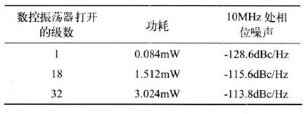 表1 数控振荡器不同级打开时的相位噪声和功耗