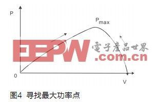 MPPT程序模块流程如图5所示。在初始化后,通过电流和电压的采样测量,可获得光伏电池的输出功率,在输出电压稳定的状态下,通过电流占空比的微调DD,使光伏电池的输出电流有微量变化DI,再检测光伏电池的输出功率的变化,在设定的算法和当时的环境变量情况下,判断DP的变化方向,再来决定下一阶段的占空比的变化方向,见图4。如果功率的变化小于了设定的微小量ε,则判定找到了最大输出功率点,只有到下一工作状态时,才继续寻找新的最大输出功率工作点。