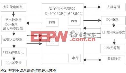 dsPIC33F系列DSC全面支持数字控制系统,丰富的PWM控制和ADC转换功能特别适合DC/DC转换、电源管理和LED照明控制系统,可满足本设计对太阳能电池组、蓄电池组MPPT、充放电控制、DC/DC转换控制和LED照明驱动的控制管理。