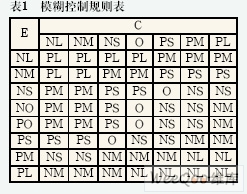 其中,0<α1<α2<α3<α4<1,本系统选择:α1=0.26,α2=0.58,α3=0.76,α4=0.86。代入上式运算后经反复修改和实际调试,得到了实用的模糊控制查询表,如表2所示。