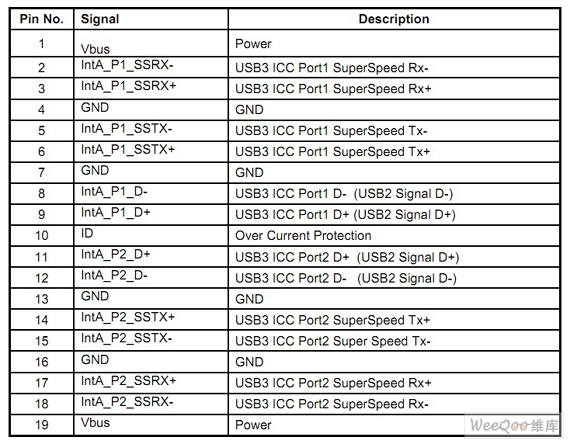 图5:USB3.0内部连接口针脚定义。