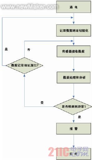 图3 是本设计系统主程序的运行流程图,主要实现加速度传感器的信号采集、分析和报警信息的提取、判断以及分类的工作。此外,还有负责控制GSM 模块相应报警信息的接收和发送工作。