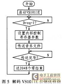 软件设计采用VS1011E音频解码器,其控制流程如图5所示。