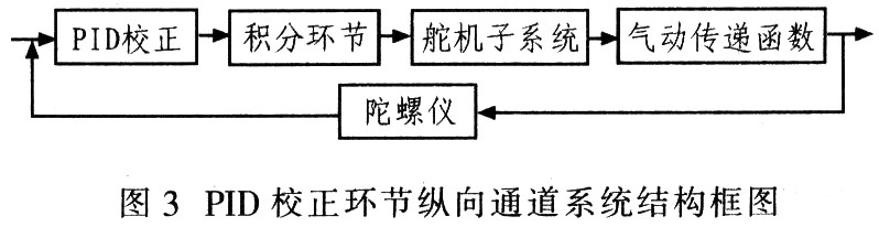 在设计精确考虑舵机环节的纵向通道时,需加入PID校正环节,分析系统使其满足设计要求,图3为其控制系统结构框图。