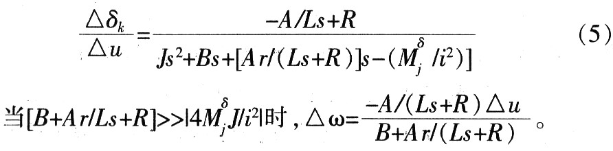 根据以上分析,引入较强速度反馈时,则电机输出角速度正比于输入电压,而与飞行状态即铰链力矩的大小无关。