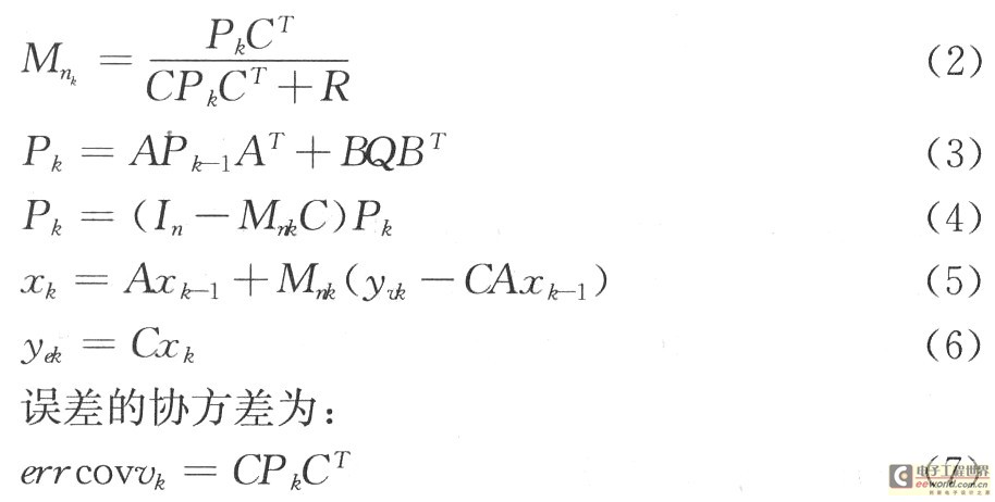 式中:ωk为过程噪声信号,vk为测量噪声信号卡尔曼滤波的递推算法为: