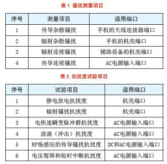 虽然手机的制式不同,但是电磁兼容要测试的项目相同,根据不同的要求来选择需要测试的项目,电磁兼容测试项目见表1和表2。