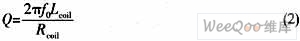 在天线设计中,品质因数Q是一个非常重要的参数。对于电感耦合式射频识别系统的读写器天线来说。较高的品质因数值会使天线线圈中的电流强度也较大,由此可改善对卡的传送功率。品质因数的计算公式为: