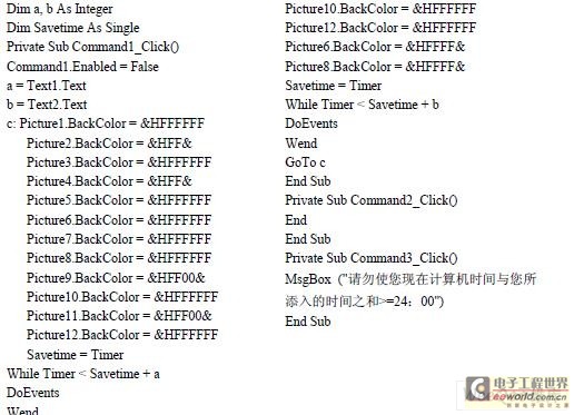 A. 延时问题的解决:作者查阅了许多相关资料,最后选中程序中所用到的提取系统时间的这个方法,其原因主要是因为这段语句比较短,不容易出错,但是有一个缺点就是不能使所添入的时间加上系统时间大于等于24:00,要不就会出错,但是这个缺陷可以人工避免。
