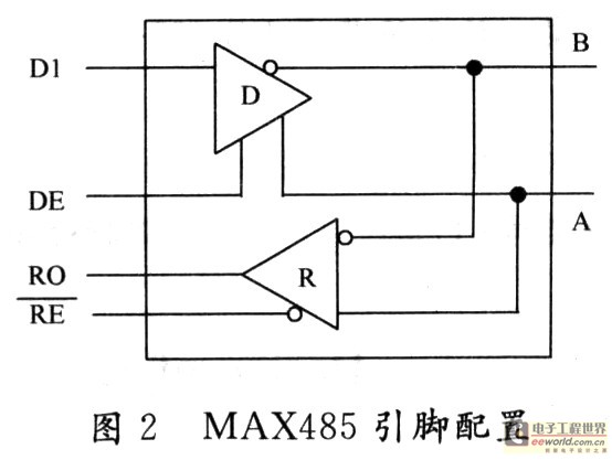 MAX485接口芯片是MAXIM公司的一种RS 485芯片,采用单一电源+5 V工作,额定电流为300μA,采用半双工通讯方式,它完成将TTL电平与:RS 485电平之间转换的功能。