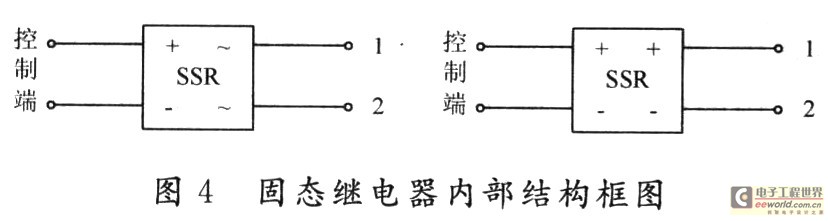 固态继电器就相当于一个无触点的开关,如图4所示,通过对输入控制端信号的给定,对交流或直流电源的通断进行控制。