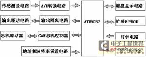 本系统中CAN总线接口电路主要在现场智能节点部分实现,为了深入说明CAN总线在啤酒发酵过程控制中的应用,下面介绍现场智能节点的总体设计,并给出实现CAN通信的硬件电路和软件流程图。