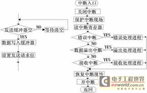 对SJA1000的初始化主要是设置CAN的通信参数,如设置模式寄存储器等。本设计中数据发送是主动的,因而对发送的处理比较简单,主程序采用查询SJA1000的状态标识符的方法,只须把被发送的信息帧送到CAN的发送缓冲区,并启动发送命令即可。为了保证系统的实时性,数据接收是通过SJA1000的中断控制来实现的,在ISR中从接收缓冲区读取要接收的信息,同时还要对出错和数据溢出中断作相应判断处理。发送接收流程图如图3所示。