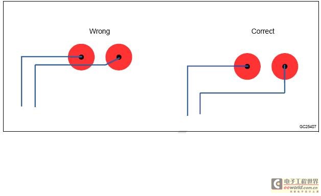 ● 传感器信号迹线到接地铜箔的间隙应当至少是迹线宽度的两倍。