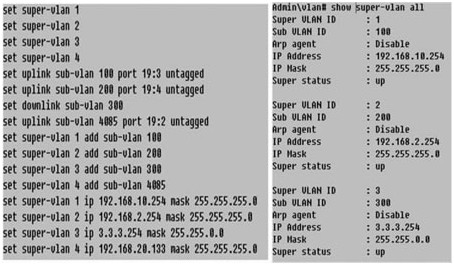 ① 管理员配置添加三层接口,包括添加SUPER-VLAN、SUB-VLAN以及IP;