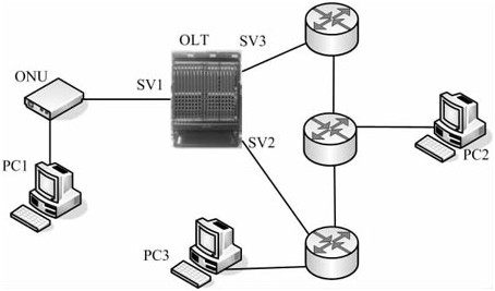 基于上述设计开发出OSPF路由软件后,针对OLT的OSPF双上联功能设计如图所示组网,三层接口分别作用在图示SV1、SV2以及SV3,配置过程如图所示。
