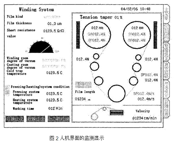 数字智能监测单元应根据实际需要而定,该系统具有五种监测单位:温度,真空度,轧辊直径,薄膜张力和传输速度。