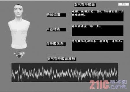 主控制器通过I/O口将模型人的位置信息传到上位机,上位机根据收到的位置信号来控制上位机软件界面的显示,可以显示听诊的位置、声音特点、与呼吸的关系以及声音的波形信息,另外还可以外接扬声器放大播放所听到的心肺声音,达到医学教学的目的。上位机界面的设计框图如图3所示。