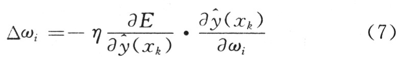 式中:η为学习率,取值为0~1之间的小数。根据上面式(6),式(7)最终可以确定权值叫的每步调整量: