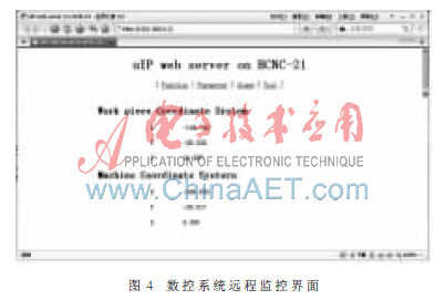按照本设计中的配置参数,整个系统中核心协议的实现代码量约为20 KB,核心协议的实现占用的内存约为10 KB,资源占用量很小,能很好地满足资源有限环境下的应用需求。采用移植精简的TCP/IP协议栈uIP,使数控系统具有网络接入功能,是一种低成本、高效的网络接入方案。通过实现Web服务器的功能,可以让用户使用统一、简洁的界面对数控系统进行远程监控,降低了用户的使用难度。