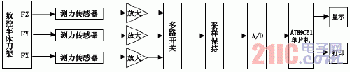 应用单片机测量数控车床切削力,实现了生产过程中连续自动采样、实时显示、过载报警,以便操作人员进行监控和管理生产,有效地防止了因切削用量过大而损坏数控车床的现象发生。