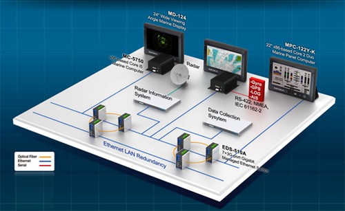 Moxa MC-5750 海事计算机 (MC-4510-C23 计算机的客制化" title="客制化">客制化版本) 是根据公司之前建立的系统排序设计的,体现了一个更可靠更强大的解决方案。MC-5750与雷达系统一起工作时,可作为雷达信息显示器,在连接到如串口" title="串口">串口NEMA或风力RPN传感器时,也能够作为一个数据采集系统。Moxa 还为该客户的MC-5750计算机客制化了3个保留端口,客户能够用来插上他们自己的开发板。